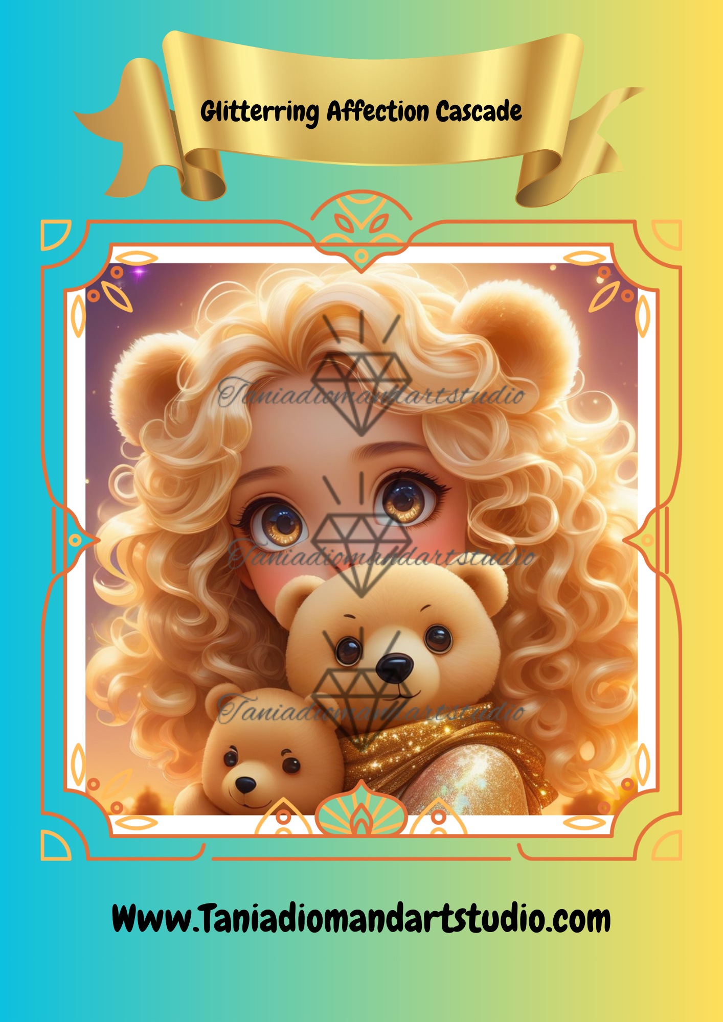 Her big honey-coloured eyes, warm and enchanting, sparkled with wonder as she cradled her magic bears close. Each bear glowed faintly, their soft fur imbued with enchantments of comfort and protection, matching her aura of tende affection. The bears, nestled in her embrace, seemed alive with a gentle pulse of magic, reflecting her pure heart.